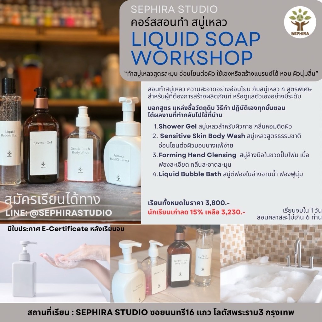 • คอร์สทำสบู่เหลวสูตรพรีเมียม — เนื้อเนียน ฟองนุ่ม สะอาด อ่อนโยนทุกผิว