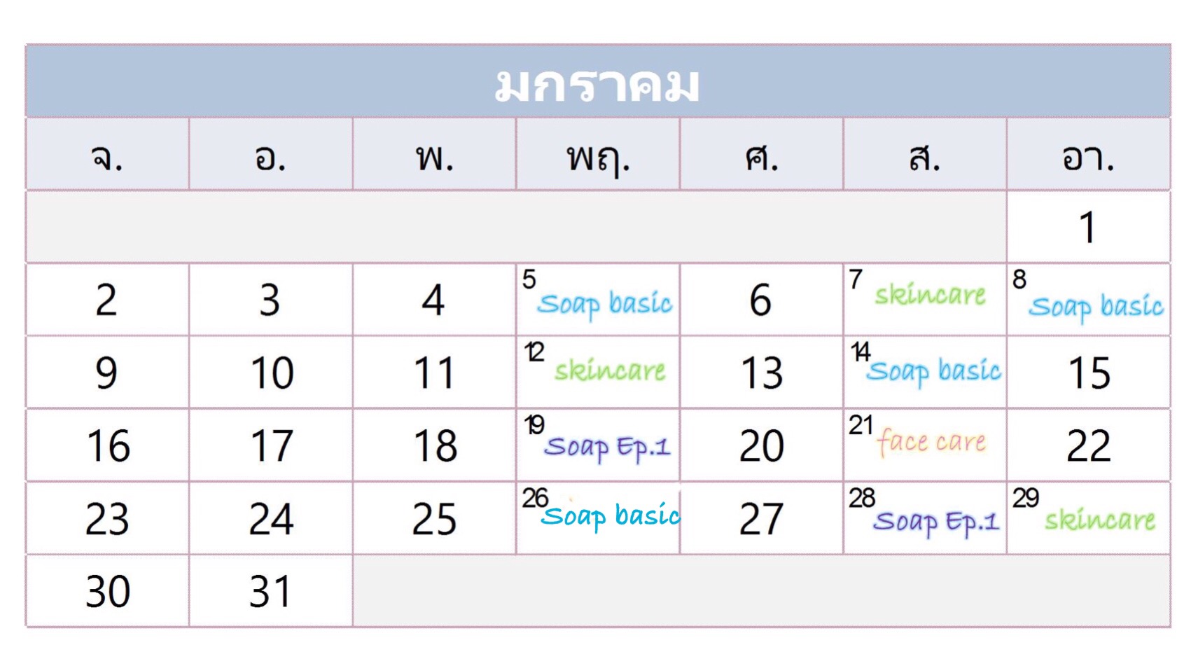 คอร์สสบู่พื้นฐาน : 2,500฿ วันพฤหัสที่ 5 ม.ค.60