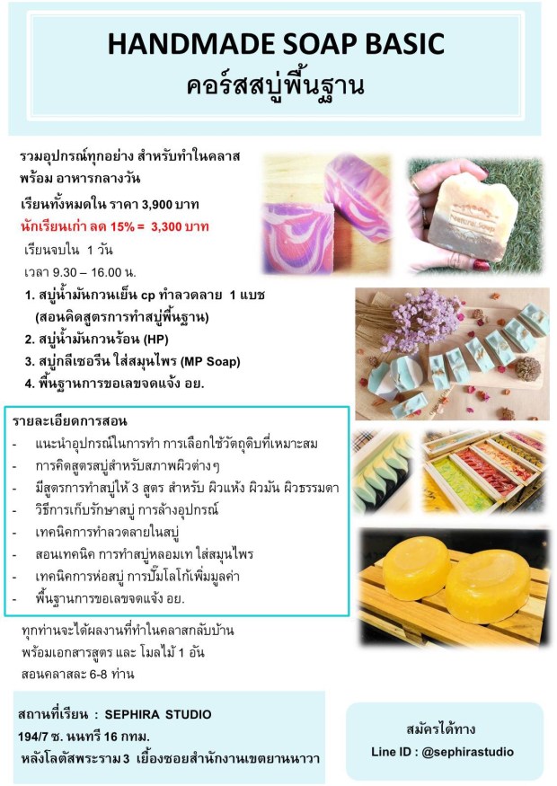 คอร์ส Soap Basic : 3990฿ วันอาทิตย์ที่ 5 ส.ค. 61