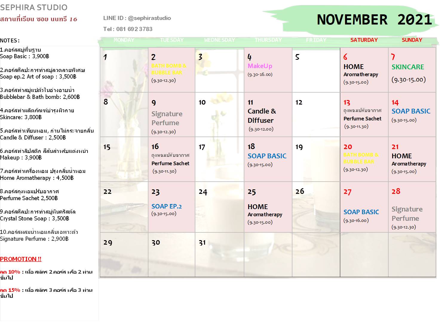 สนใจสมัครได้ทาง Line ID : @sephirastudio