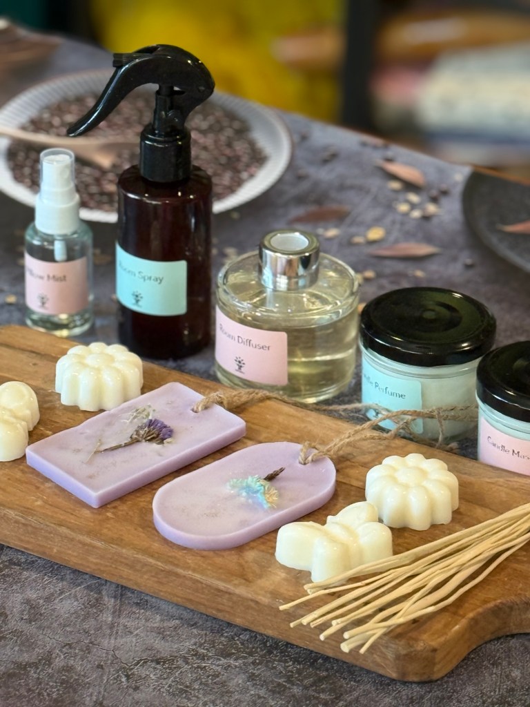 เรียนปรุงกลิ่น + ทำสินค้า เช่น เทียนหอม , Candle massage , Reed Diffuser, Room Spray และ Pillow Mist