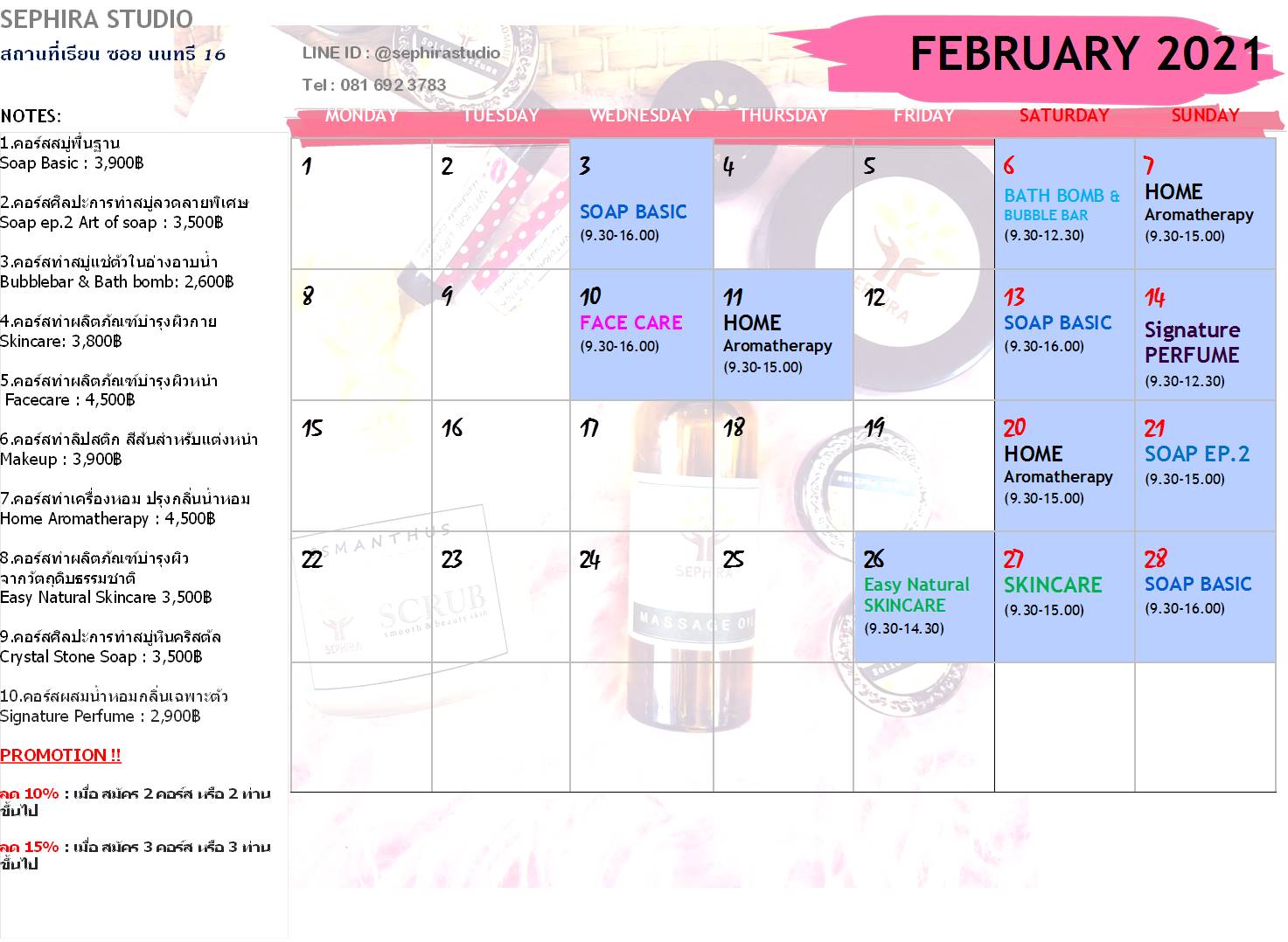 ตารางสอนเดือน กุมภาพันธ์ 2564