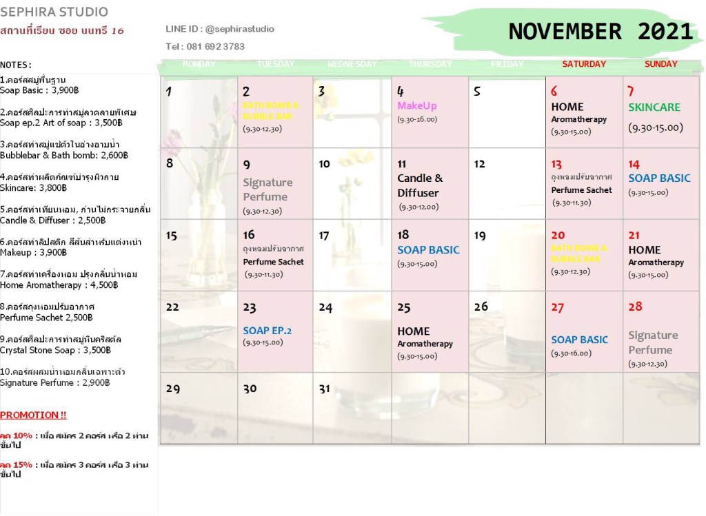ตารางสอนเดือน พฤศจิกายน 2565