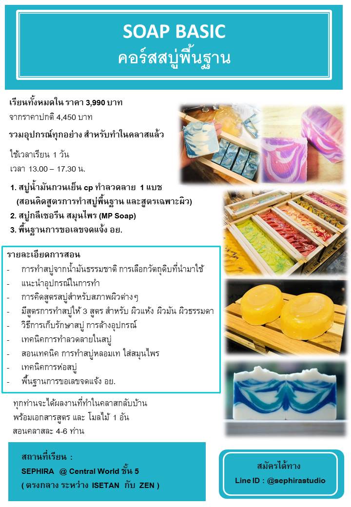 Workshop Handmade Soap and skincare : สอนทำสบู่ และ ผลิตภัณฑ์บำรุงผิว จากวัตถุดิบธรรมชาติ : Line ID : @sephirastudio : Tel. 081-6923783 : E-mail: sephirashop@yahoo.com : www.facebook.com/sephirastudio : www.sephirastudio.com