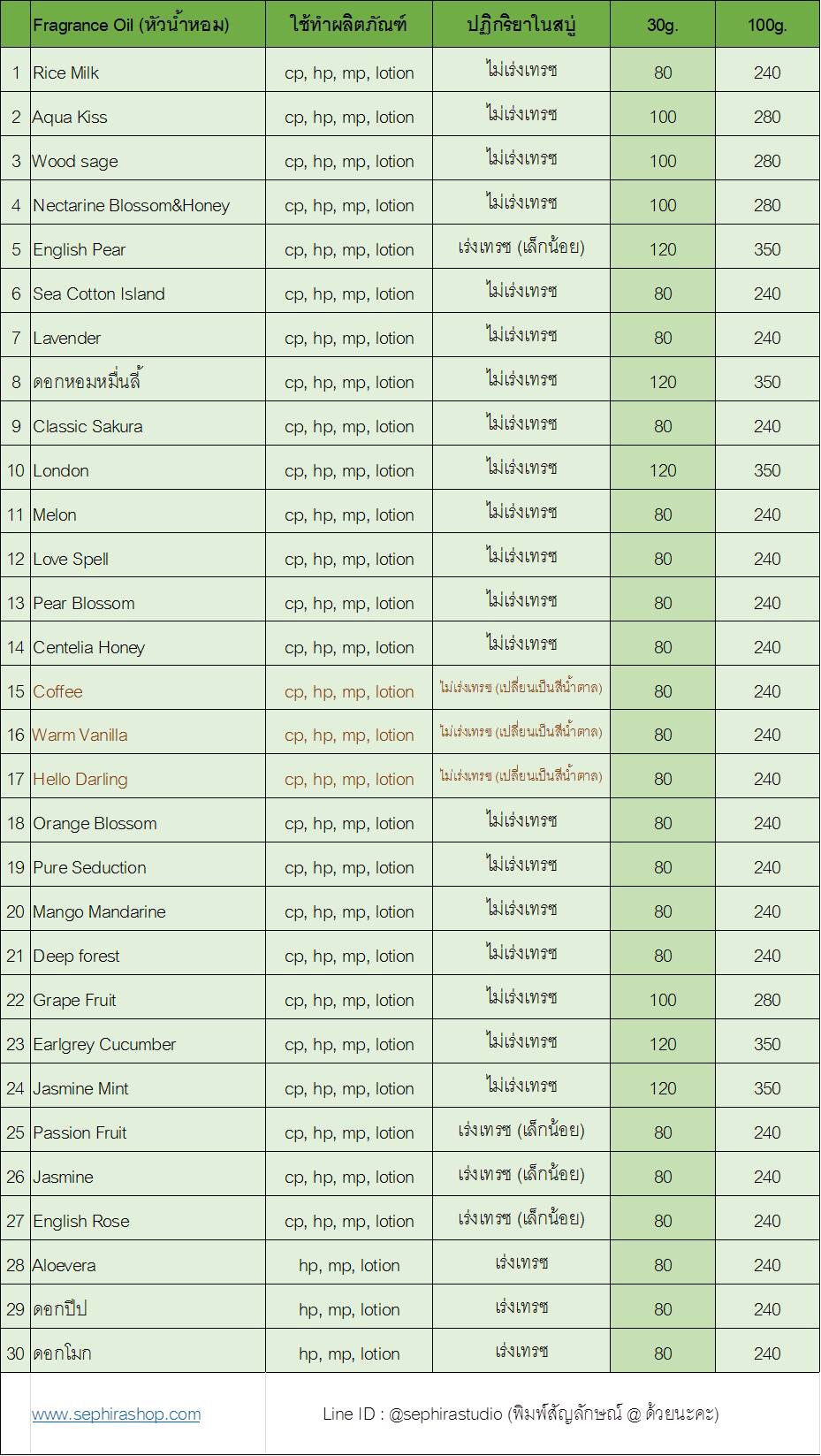 หัวน้ำหอม สำหรับทำสบู่ และ เครื่องสำอาง skincare