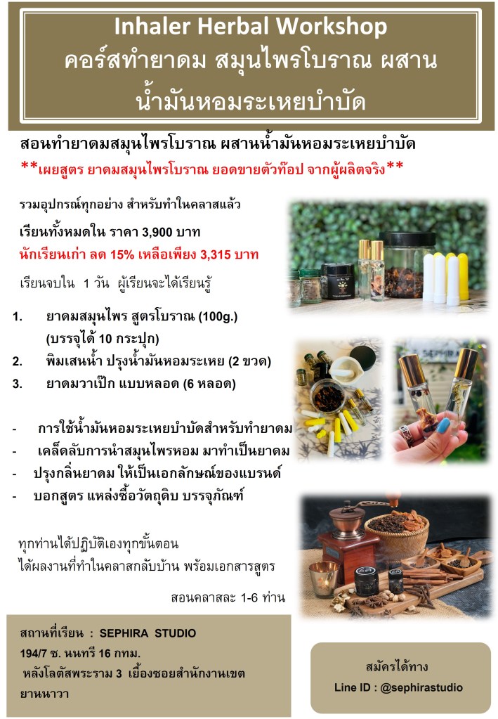 สอนทำยาดมสมุนไพรโบราณ และการเลือกน้ำมันหอมระเหย บำบัด เพื่อเป็นผลิตภัณฑ์ที่เป็นเอกลักษณ์ไม่เหมือนไคร
